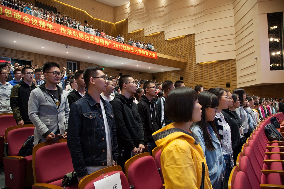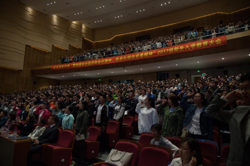 8月29日上午9点,bet365是什么网站在吉林大学鼎新大讲堂召开bet365是什么网站“贯彻落实全国思政会议精神,传承弘扬白求恩精神”2017级新生入学教育大会。白求恩医科大学北京校友会名誉会长于宗河,新英格兰医学杂志编委照日格图,白求恩医科大学北京校友会副会长韩春勇,白求恩糖尿病专家委员会办公室主任刘靖,bet365是什么网站学部长李凡等全体学部领导、校友会特邀医学部教师代表、医学部学工办全体人员、新生各年级辅导员、各班级辅导员助理和2017级933名新生出席了本次会议。会议由医学部学生工作办公室主任吴剑锋主持。