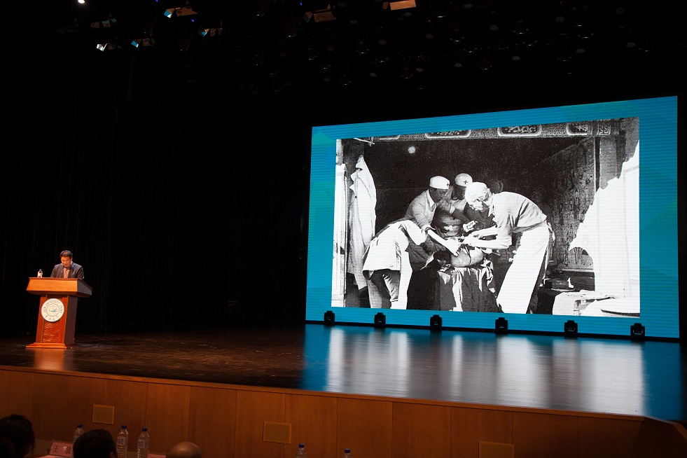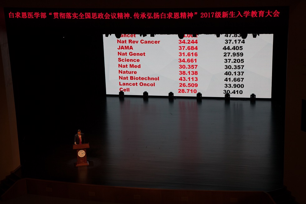 原卫生部医政司司长——老校友于宗河先生为大家做了题为《踏着白求恩足迹走大医之路》的讲座,带领新生重温和感受了抗日战争时期白求恩同志克服困难,走出国门,跨过国界,不远万里来支援中国的抗日战争,救死扶伤,最后不幸牺牲的历史篇章,让新生们更加深刻的了解白求恩精神永垂不朽的伟大之处,更加懂得珍惜今天来之不易的美好生活,时刻谨记自己的从医使命,像白求恩同志那样,具有不畏艰辛、甘于奉献,为医学献身的大医情怀。《新英格兰医学杂志》编委照日格图教授做了题为《阅览国际医学期刊,也是一门必修课》的讲座,介绍了目前在医疗界影响因子较大的医学期刊,强调了医学生有效阅览医学期刊的重要性,照日格图教授的报告让刚刚入学的新生享受了一顿世界顶尖杂志的科学文化大宴。